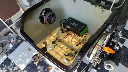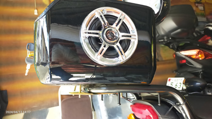 | ミラーと共締めして | 配線します | リアスピーカーはボックスに穴空け | オーディオ完成 |