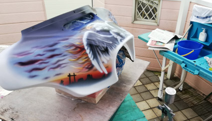 このページでは私のエアーブラシ作品やエアーガンでの塗装の様子をご紹介します。アートのページにも過去の